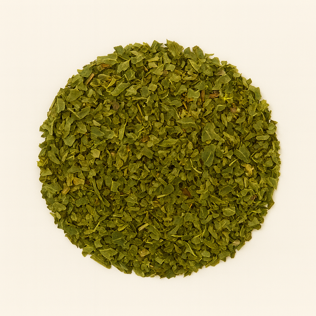 Gedroogde kruiden en planten, kruidenpoeders en kruidenblends (productafhankelijk).